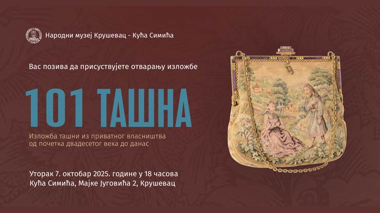 Народни музеј Крушевац вас позива на отварање изложбе под називом — 101 ТАШНА, изложба ташни из приватног власништва од почетка двадесетог века до данас, ауторке гђе Зоране Драшковић Ковачевић, вишег кустоса педагога.