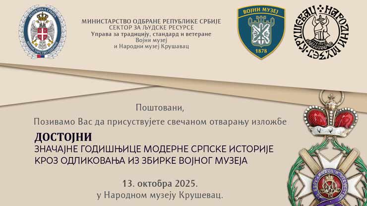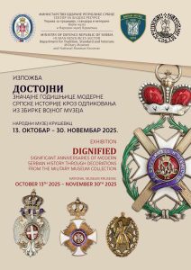 Изложба „Достојни – значајне годишњице модерне српске историје кроз одликовања из збирке Војног музеја“ биће отворена до 30. 11. 2025. године.