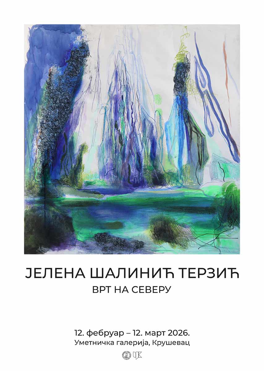 Изложба Јелене Шалинић Терзић представља радове из циклуса Врт на северу, као ново поглавље у развоју њеног уметничког израза. Ослањајући се на дугогодишње истраживање пејзажа као и концептуалног и искуственог простора, кроз низ радова на папиру, цртежа рађених тушем, оловкама у боји и оних насталих комбинованом техником у којима користи и несликарске материјале, ауторка успоставља суптилан дијалог између географског, поетског и личног доживљаја.